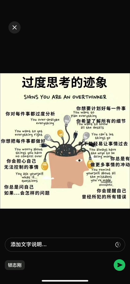 这些特征综合起来,就是典型的“过度思考”。简单来说,就是你总爱把事情想得特别复杂,喜欢计划和控制一切,对未来充满担忧,并且经常为过去的错误自责。