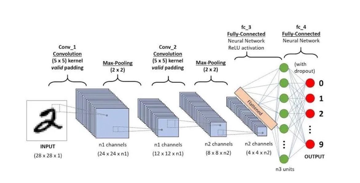 通过以上步骤,这个卷积神经网络能够自动从输入的一张手写数字图片中提取特征,逐步简化和综合这些特征,最终准确地识别出这个数字。这种方法不仅用于手写数字识别,还广泛应用于各种图像分类任务。