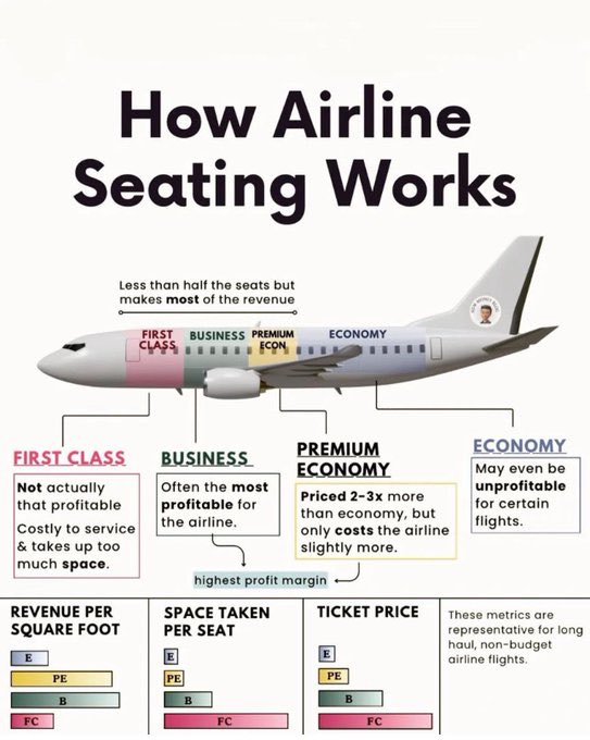 - 盈利情况:通常是航空公司最赚钱的部分,因为票价高且成本相对较低。
