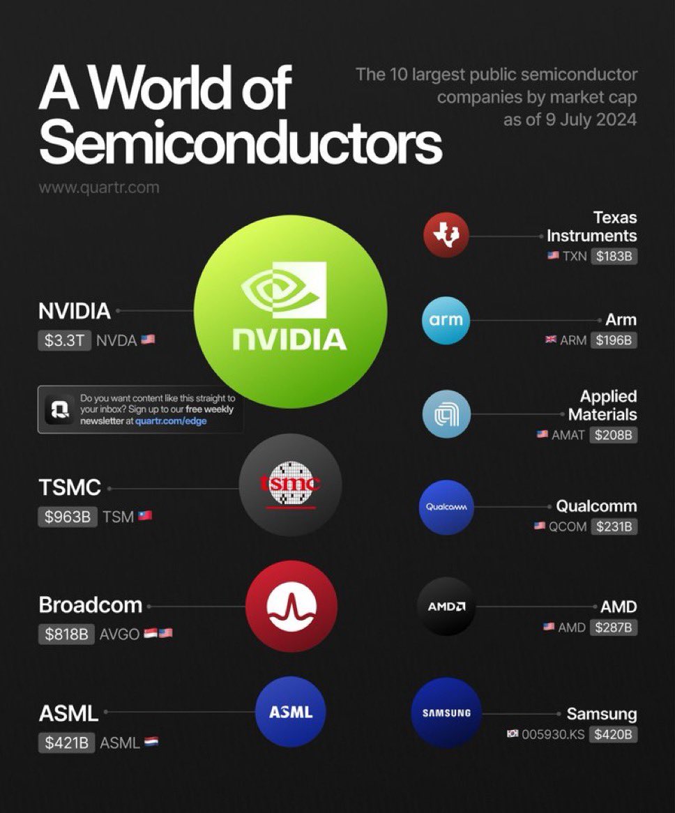 📢 今天来看看最新的半导体公司排行榜,这可是2024年7月9日的数据哦!📅
