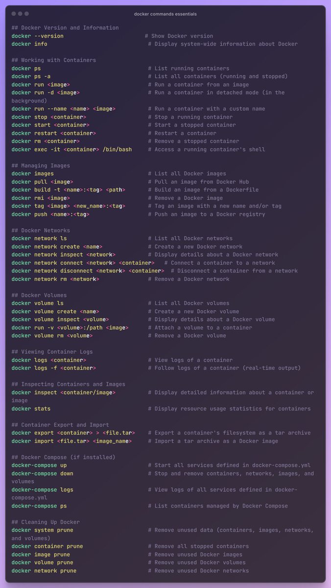这张图汇总了常用的Docker命令,帮助你快速上手和高效管理Docker容器。让我们用https://t.co/4NCkj0hkZM一步步来解读这些命令吧!