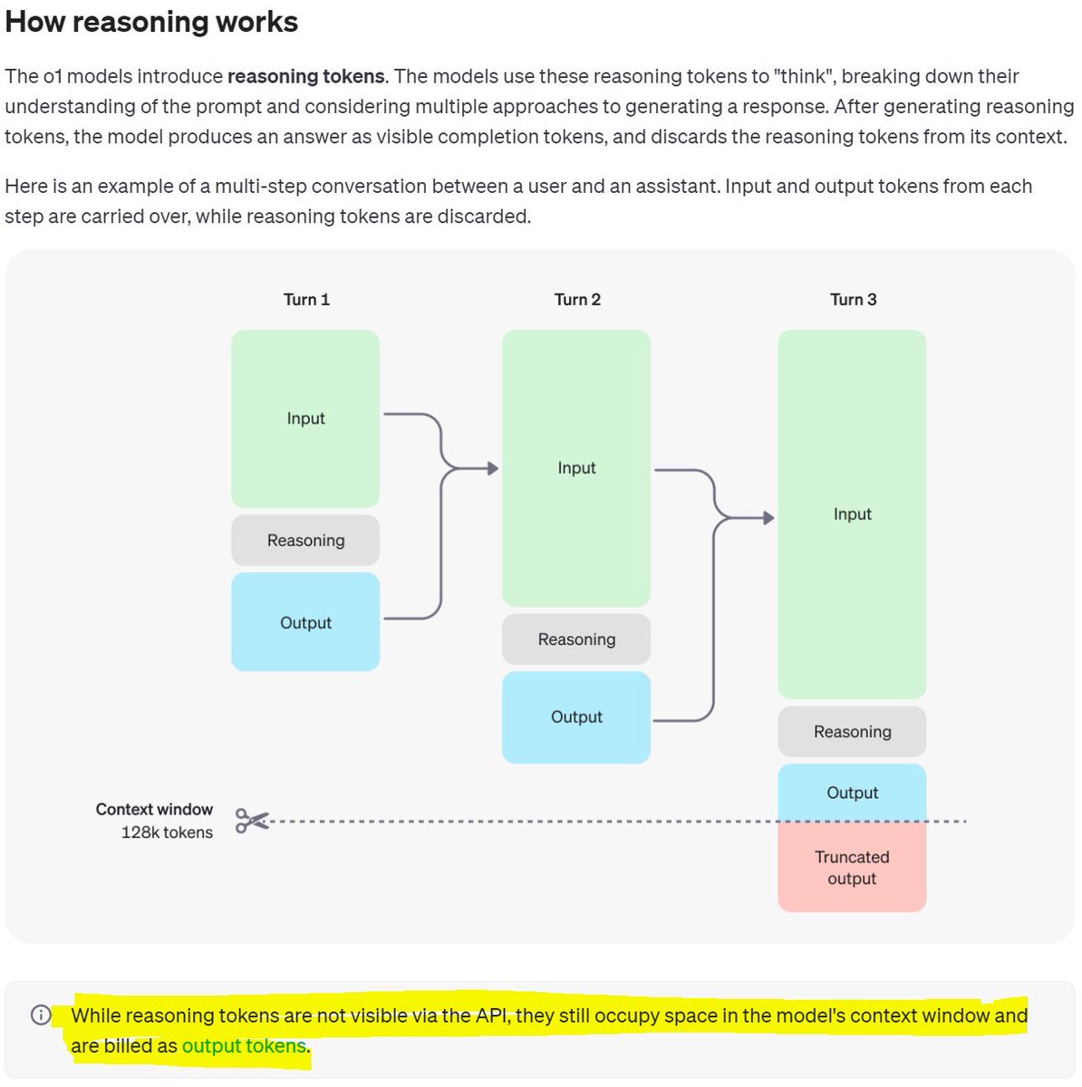 换句话说,推理token是模型在幕后进行复杂计算和分析的工具,虽然它们不会出现在API的可见结果中,但它们仍然占用模型的上下文空间,并被计入输出token