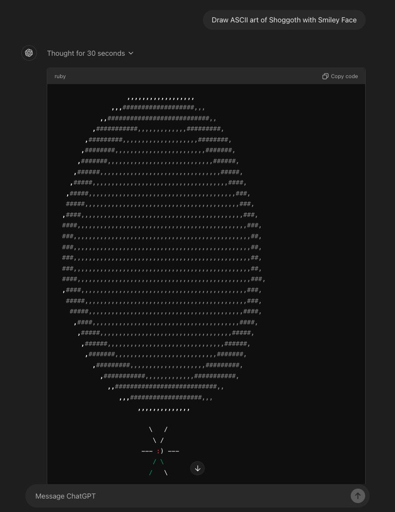 输出质量高:从图中可见,o1生成的ASCII艺术细节丰富且准确,这体现了其在细节处理上的优势。