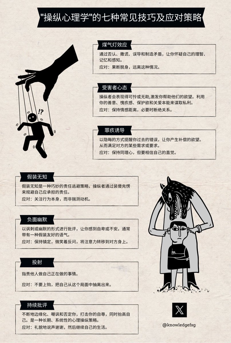 通过了解这些常见的操纵技巧和相应的对策,我们可以更好地保护自己,不被他人轻易控制和影响。
