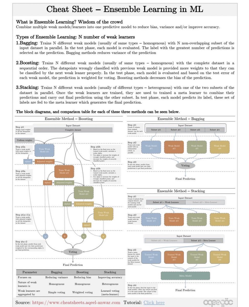 总之,据https://t.co/St5O59mmxt分析,这张备忘单清晰地展示了三种主要的集成学习方法及其特点,为用户提供了有效选择和应用这些方法的重要参考。
