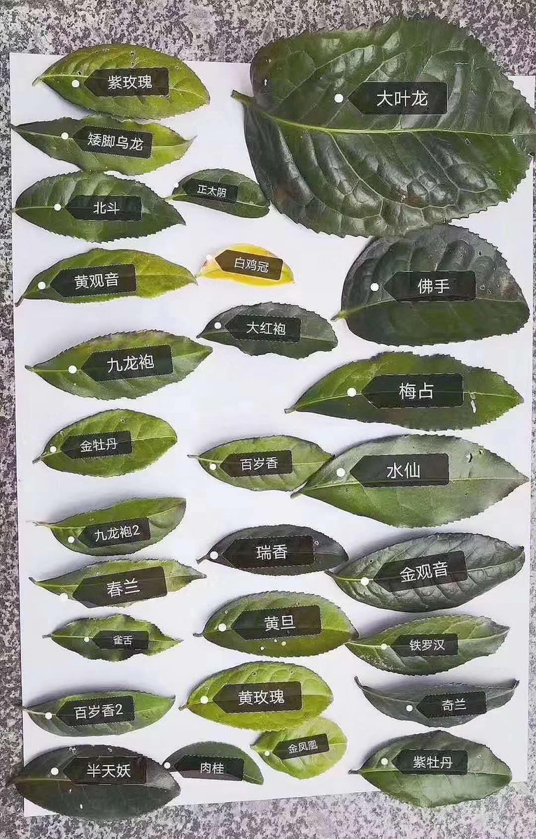 23. 水仙 - 著名的闽南乌龙茶品种之一,宽大的绿色叶片。