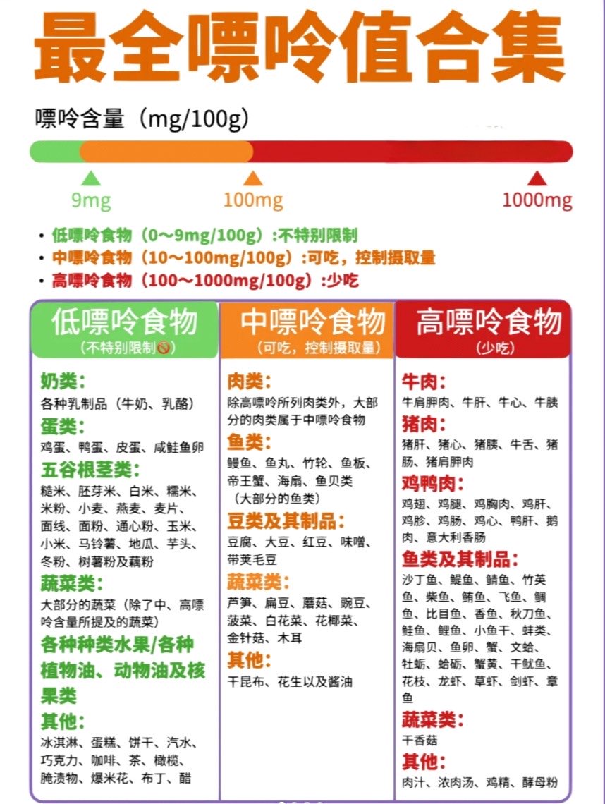 📊 最全嘌呤值合集:健康饮食一目了然!🍽️