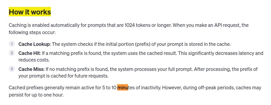 由于每次请求中的前半部分是固定的,只是最后的英文文本内容不同,这样就可以利用OpenAI的新提示词缓存功能。当你的固定部分超过1024个Tokens时,这部分内容会被自动缓存。