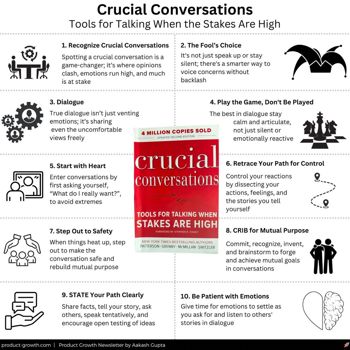 这十条策略能够帮助你在高风险、高压力的情况下保持冷静,从而有效地引导和掌控关键对话。通过这些技巧,你将能够在各种复杂情境中脱颖而出,实现更好的沟通效果和结果。