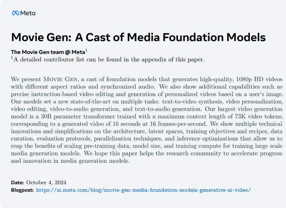 震撼发布:Meta的Movie Gen引领媒体生成新时代!