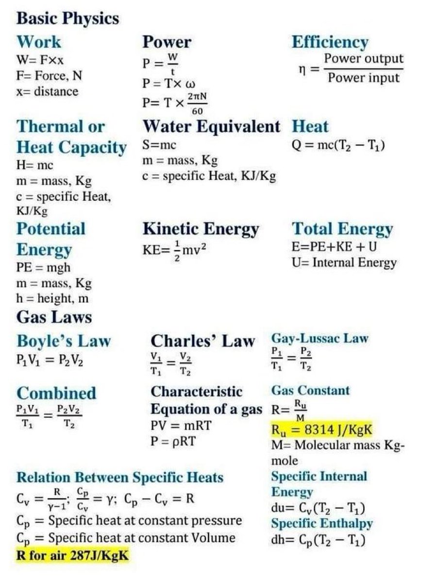 - 描述气体性质的重要常数,\( R_u = 8314 J/KgK \)。