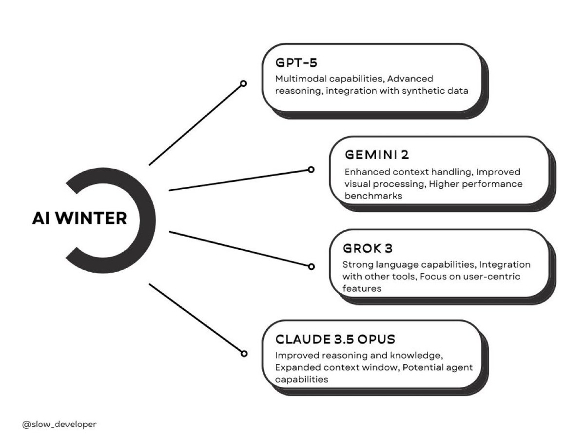 - 在年底前,我们期待看到更多重磅发布,包括 Grok 3、Gemini 2 和 O1 ful,每一个都可能重新定义我们对AI的期望。