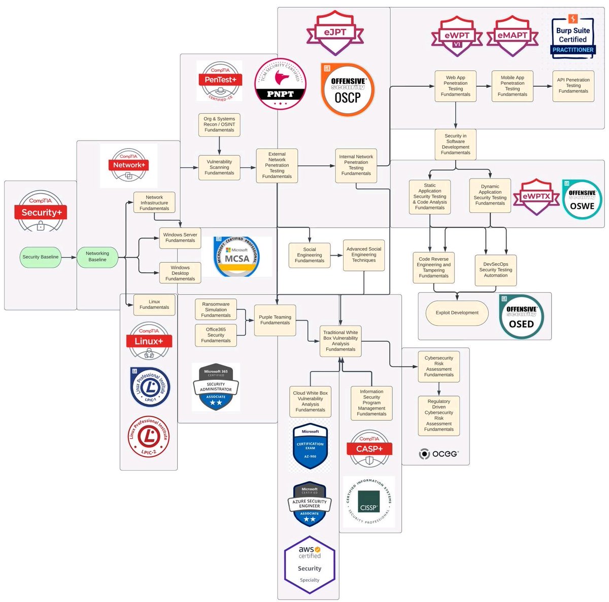 这张图详细介绍了网络安全行业中最受欢迎和需求量最大的职业角色: