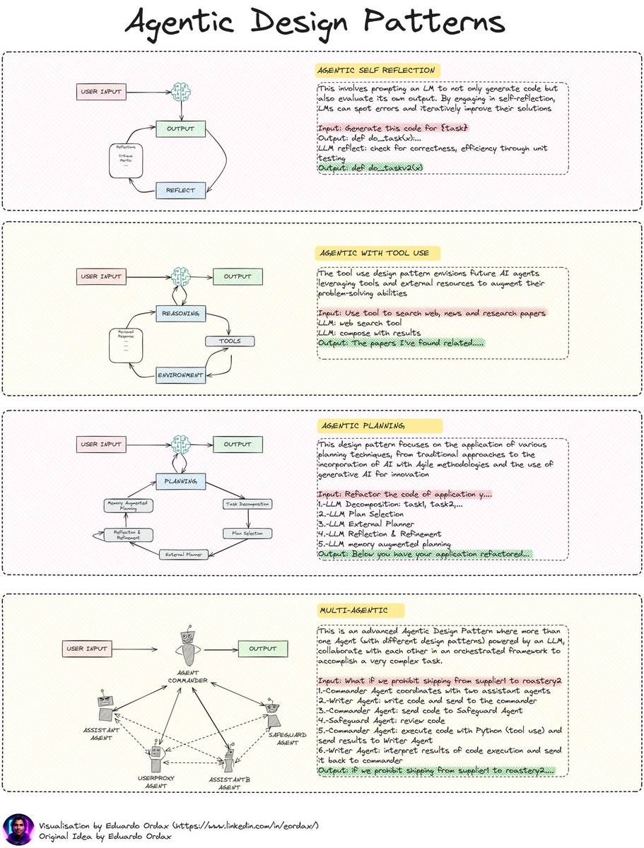 这些设计模式展示了如何利用语言模型进行创新性任务管理。通过自我反思、工具集成和多代理协作,可以实现更高效、更智能的系统。这些模式为未来AI的发展提供了重要参考。