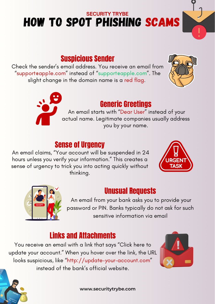 - 收到带有更新账户链接的邮件,悬停时发现URL看起来可疑,如“https://t.co/hKdSzJNECE”,而不是银行的官方网站。