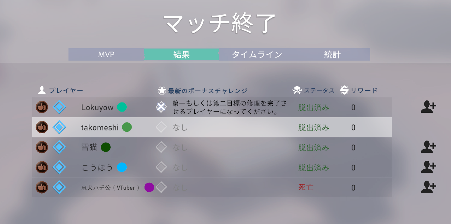 初プレイ。静かに死ぬ(ディスコのボイチャで通話できるにも関わらず、5分前ぐらいには死んでいた、との発言で他のプレイヤーを驚かせた)