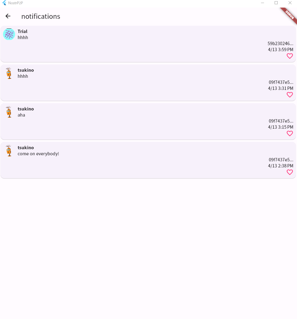 NostrP2P、ファボの通知ページでの表示が実装でけた。