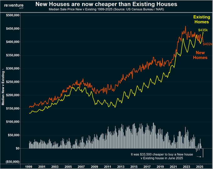 For the first time on record, new homes are cheaper than existing ones.