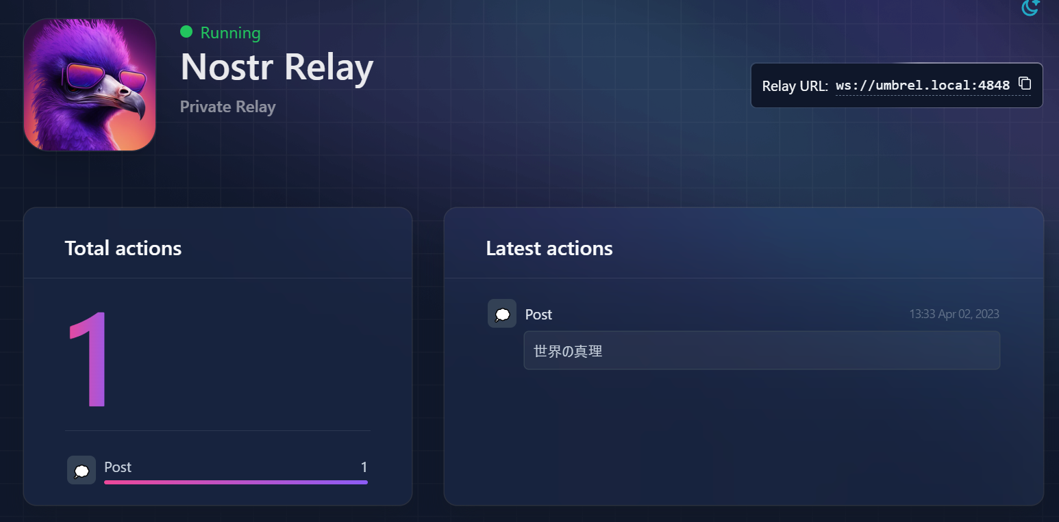 Umbrel使ってる割にnostrリレーは入れてなかったから入れてみたけどエラー出てるななんか