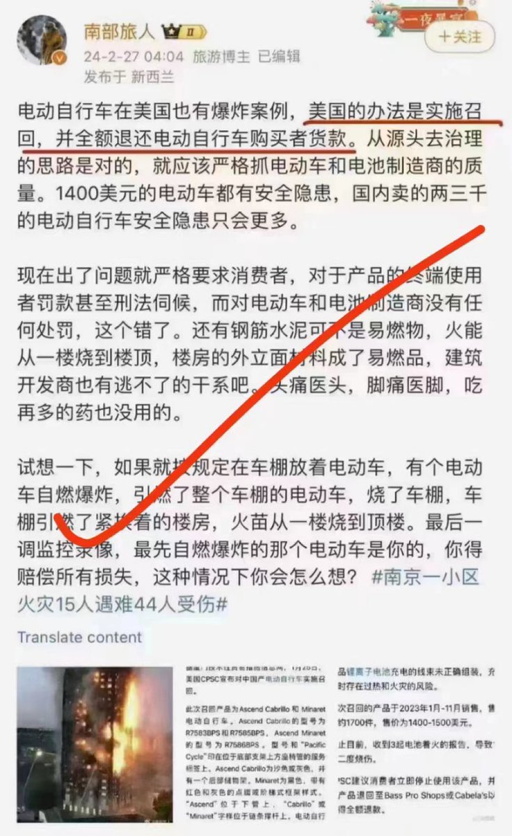 🔥 轉:既然是電池發生自燃,那肯定是電池的質量問題,自然應該找廠家,但是奇葩的中共國卻把問題推給了用戶❗️
