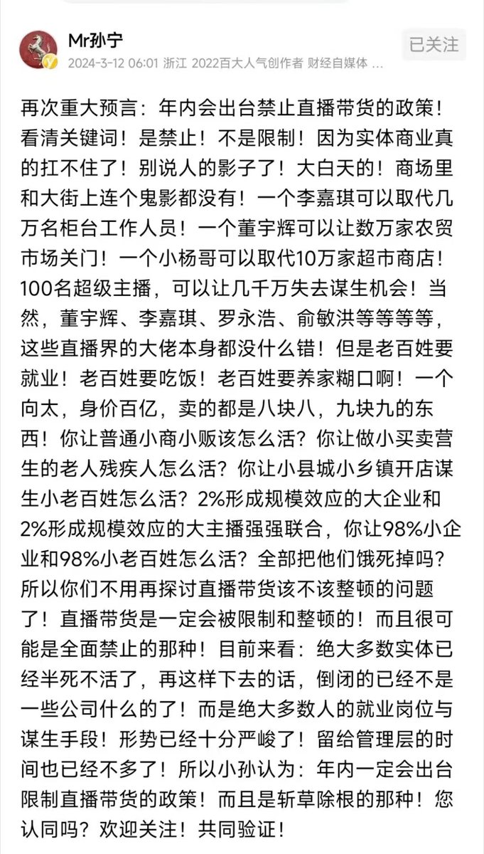 🔥 据说这哥们预言,即将出台政策,禁止直播带货了,大家觉得可信吗?!