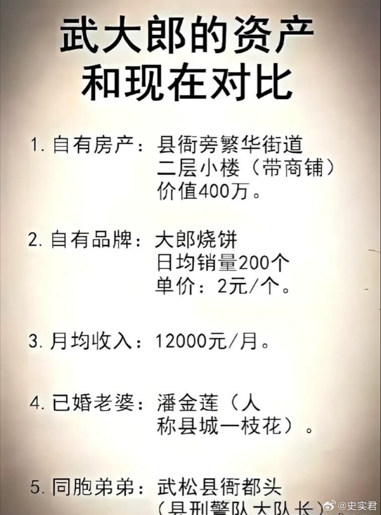 🔥 轉:拋卻武大郎的橫死,對比當今中共國同樣社會地位的人群,當時一個沿街叫賣的普通小販子武大郎簡直就是人生贏家,放到現在,在當地有幾個敢惹? https://t.co/l4gv7cwTWD