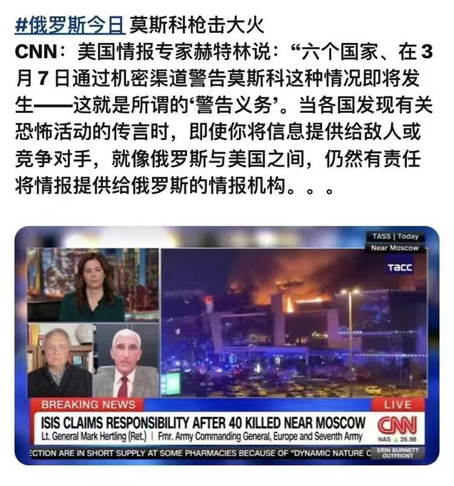 1,逊尼派ISIS在莫斯科袭击了俄国音乐厅,美国事先向普俄预警