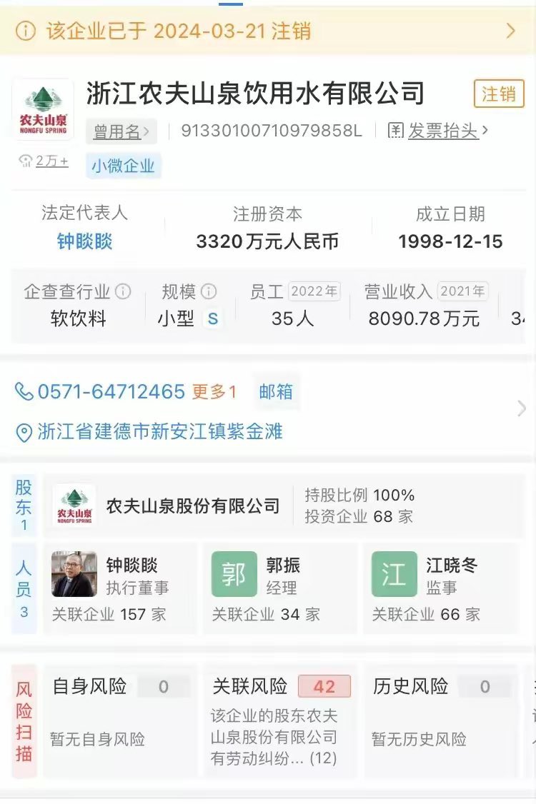 🔥 农夫山泉饮用水公司注销,你们满意了?