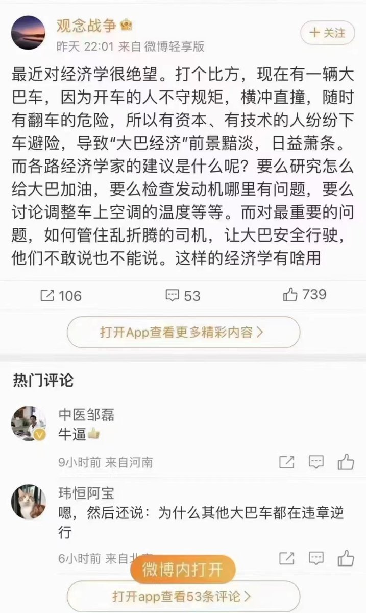 😆 大巴上有一群哈巴经济学家!关键是司机大人还在不停的加速...... https://t.co/Wpy0txyXpG