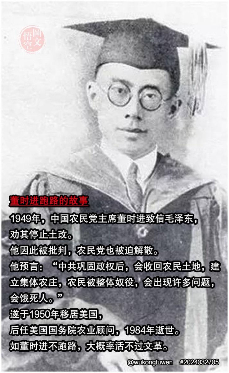 后任美国国务院农业顾问,1984年逝世。如董时进不跑路,大概率活不过文革❗️