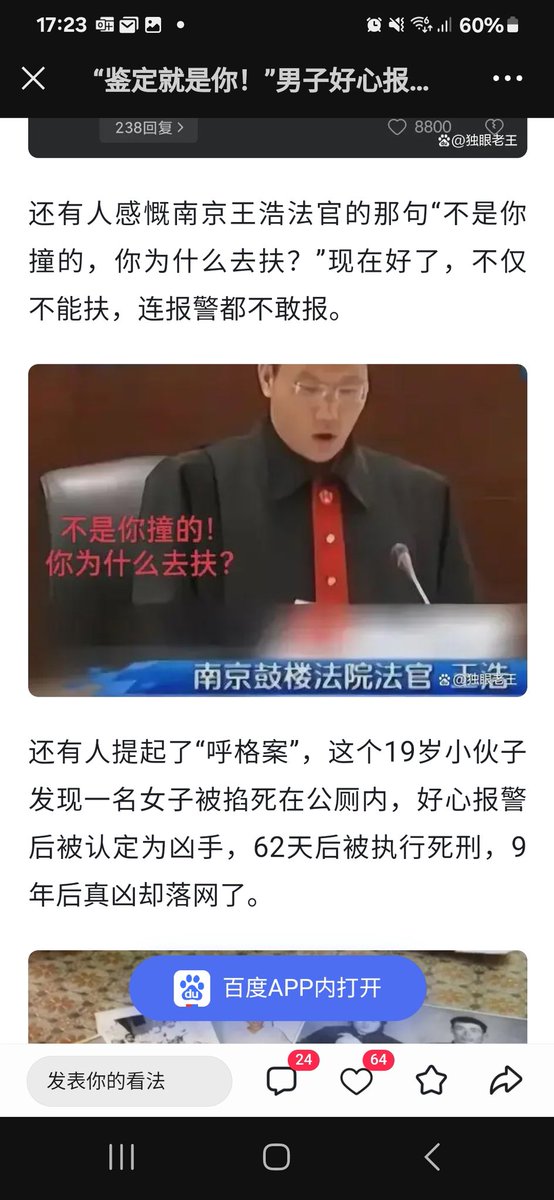 还有人感慨南京王浩法官的那句“不是你撞的,你为什么去扶?”现在好了,不仅不能扶,连报警都不敢报。