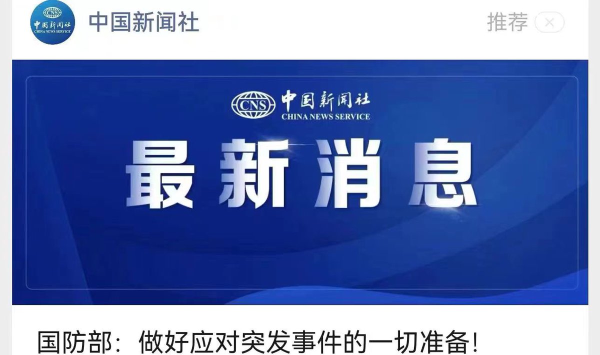 🔥【中共国防部】做好应对突发事件的一切准备!
