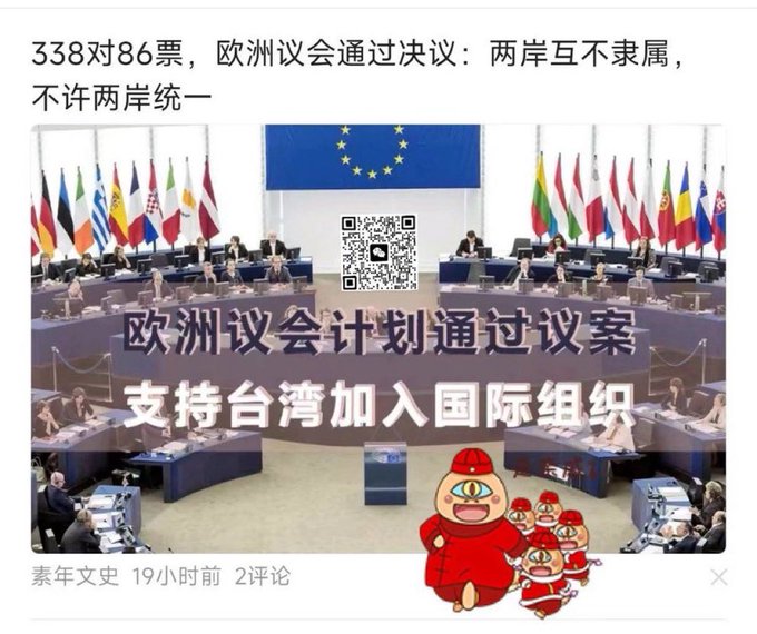 🎯 2024年2月28日、338对86票,欧洲议会通过决议:两岸互不隶属,支持中华民国加入国际组织,不许两岸统一 ! https://t.co/uA7jaqnBSh