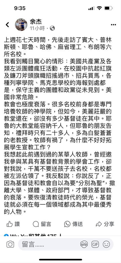 🔥转余杰文:上週花七天時間,先後走訪了賓大、普林斯頓、耶魯、哈佛、麻省理工、布朗等6所名校。我看到觸目驚心的情形:美國共產黨及各類左派團體瘋狂活動,在校園中抗起紅旗及鐮刀斧頭旗幟招搖過市、招兵買馬,各種列寧學院、馬克思學校的海報到處都是,保守主義的團體和政黨從未見到。美國非常危險!