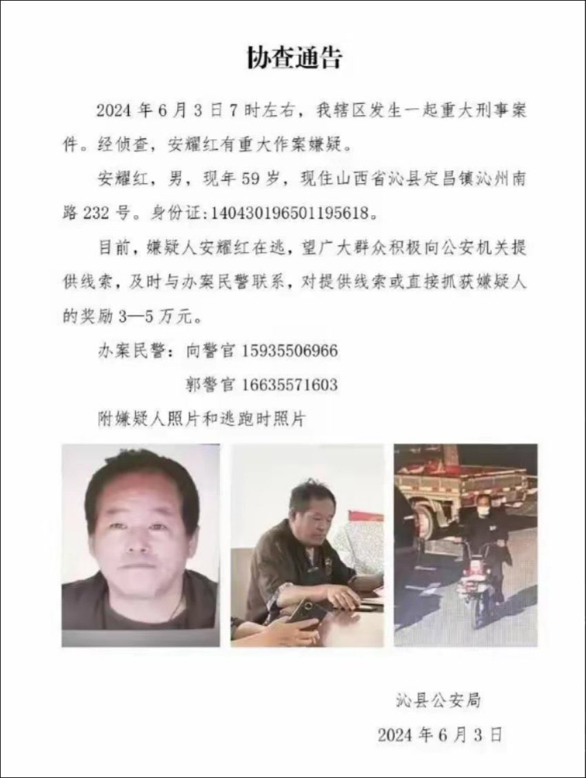 🔥 6月3日大清早七点左右,山西省沁县政协主席,原副县长郭建宇被人持刀杀死,经查,凶手为沁县定昌镇的安耀红,死者郭建宇曾任定昌镇党委书记、镇长… https://t.co/pXEVWLRR3W
