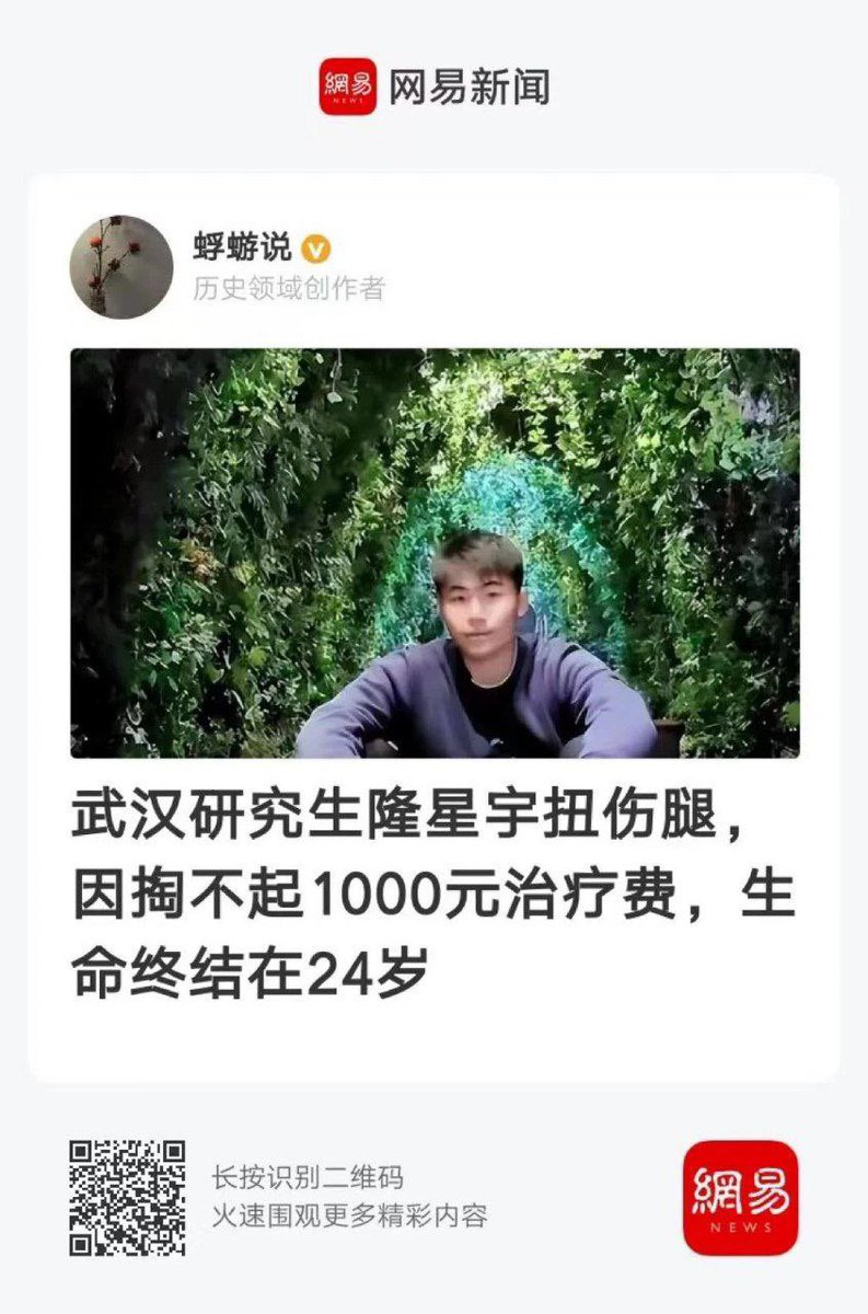 🔥 根据中国地质大学官方发布:该校研究生三年级学生隆星宇因扭伤膝盖未及时治疗致肺栓塞呼吸心跳骤停。