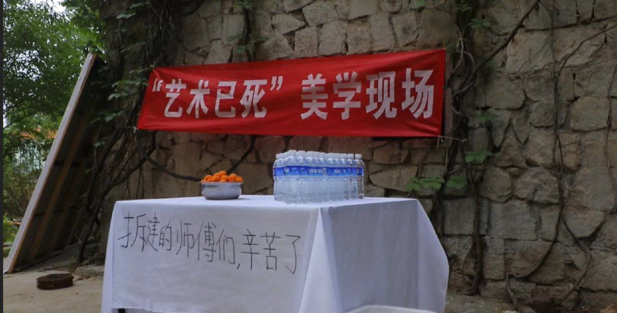 6月14日,上苑艺术馆发起“艺术已死”活动,邀请人们来到被强拆的艺术馆废墟中进行创作和悼念。同时艺术馆认为当初政府出资将艺术馆门外的垃圾场改造为艺术长廊,还修设立了公交站。如果违建当初政府为什么要扶持?! https://t.co/oEKY5TM7RN