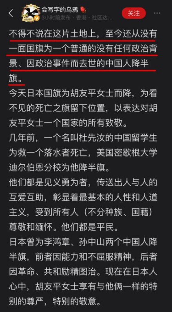 📣【网友文章】不得不说在这片土地上,至今还从没有一面国旗为一个普通的没有任何政治背景、因政治事件而去世的中国人降半旗😮💨‼️ https://t.co/RX866CCUJk
