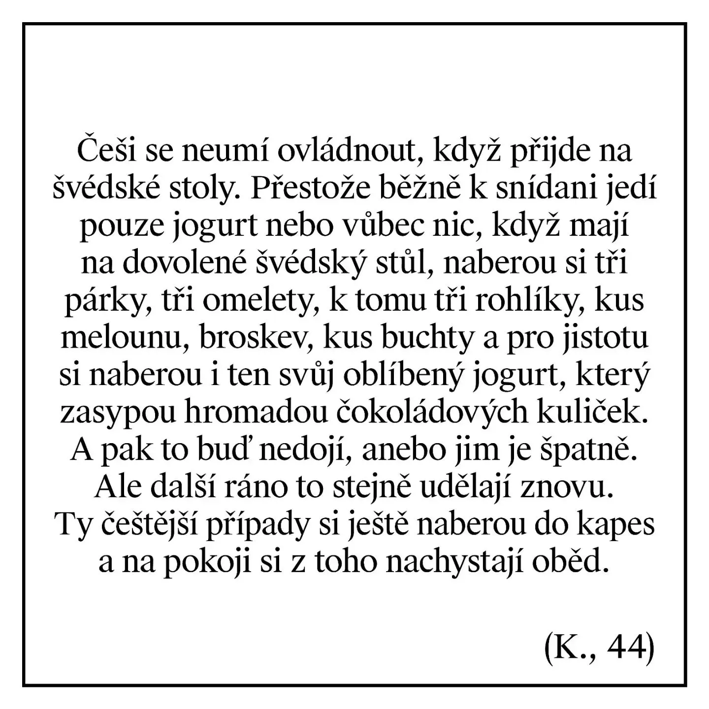 Tedy většinou si ještě beru na pokoj čaj a jablko.