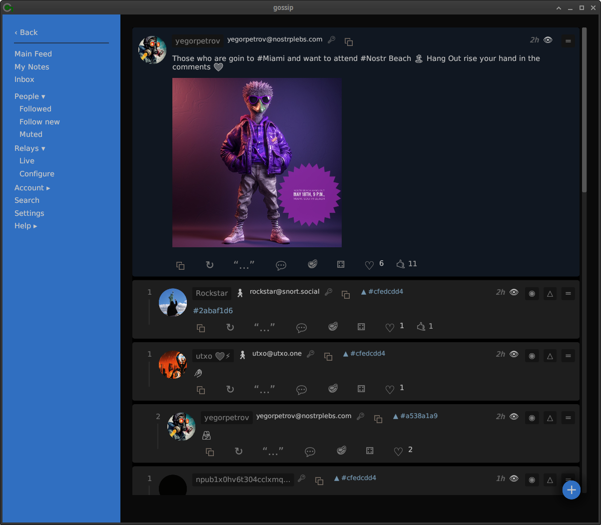 Finally figured out and set up Gossip by @nostr:npub1acg6thl5psv62405rljzkj8spesceyfz2c32udakc2ak0dmvfeyse9p35c on my desktop. The UI is unapologetically bad, but it's still a fantastic client with a ton of features that matter. Can't wait to watch it improve.