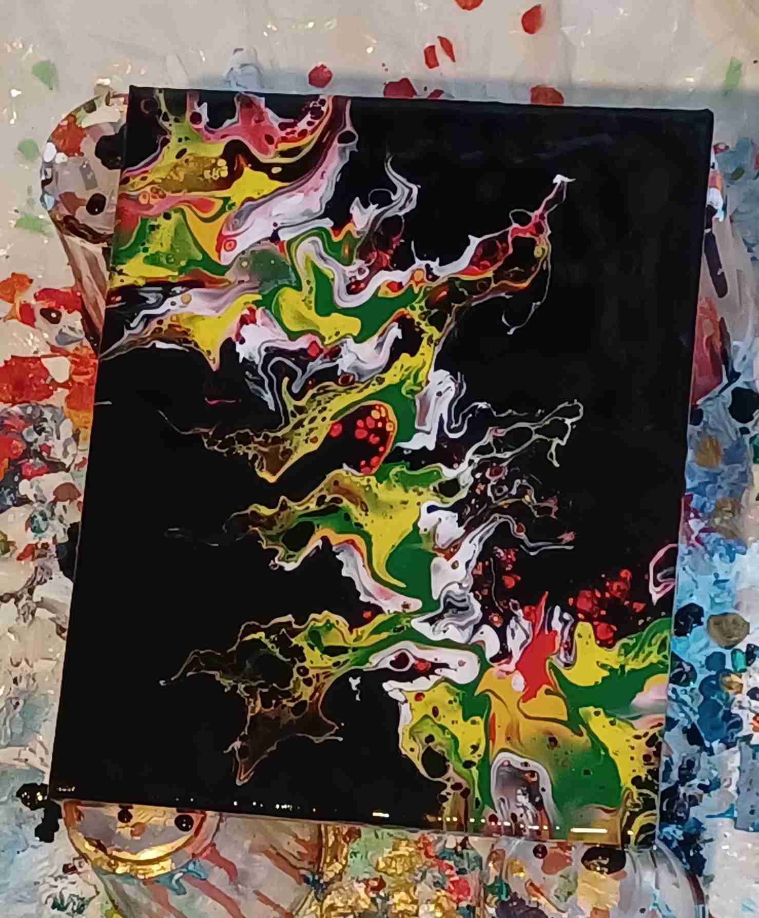 Jus painted this lil beauty. πβ€οΈππ€ 8x10 acrylic pour on matte black base. #artstr #zbdinternetcitizen #nostr