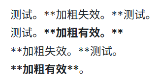 英文标点后面本来就有空格,所以实际不会遇到加粗失效的状况。但中文标点后面紧跟着下一个汉字,就,加粗失效……