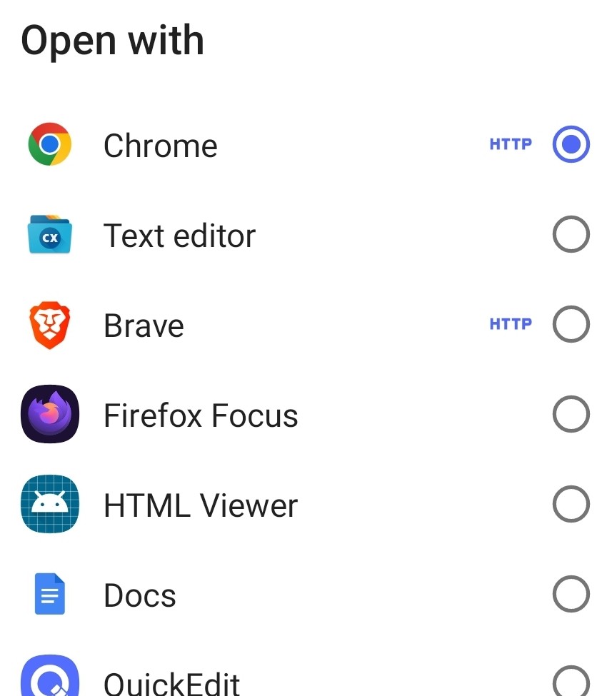 安卓上的 .html 选择用 chrome 或 brave 打开,就可以了。但最新的 ios 上,完全找不到把 .html 发送到浏览器的选项。(后来发现可以发送到微软 Edge,但仍然只是打开单独的文件,没有关联本地 css/js。