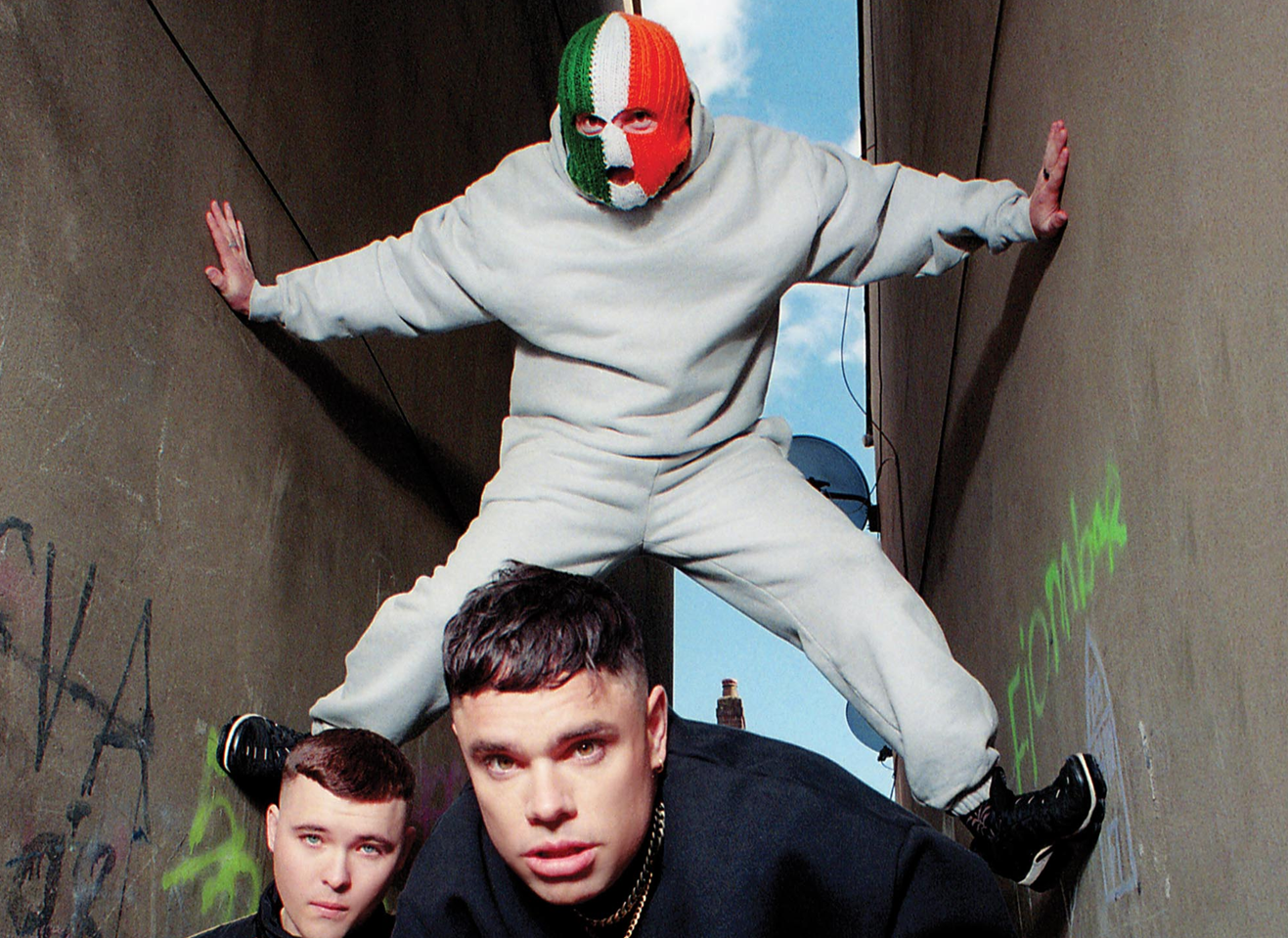 膝盖骨 Kneecap 乐队 DJ 戴的爱尔兰配色毛线头套,好想弄个彩虹旗以及巴勒斯坦国旗版的用~