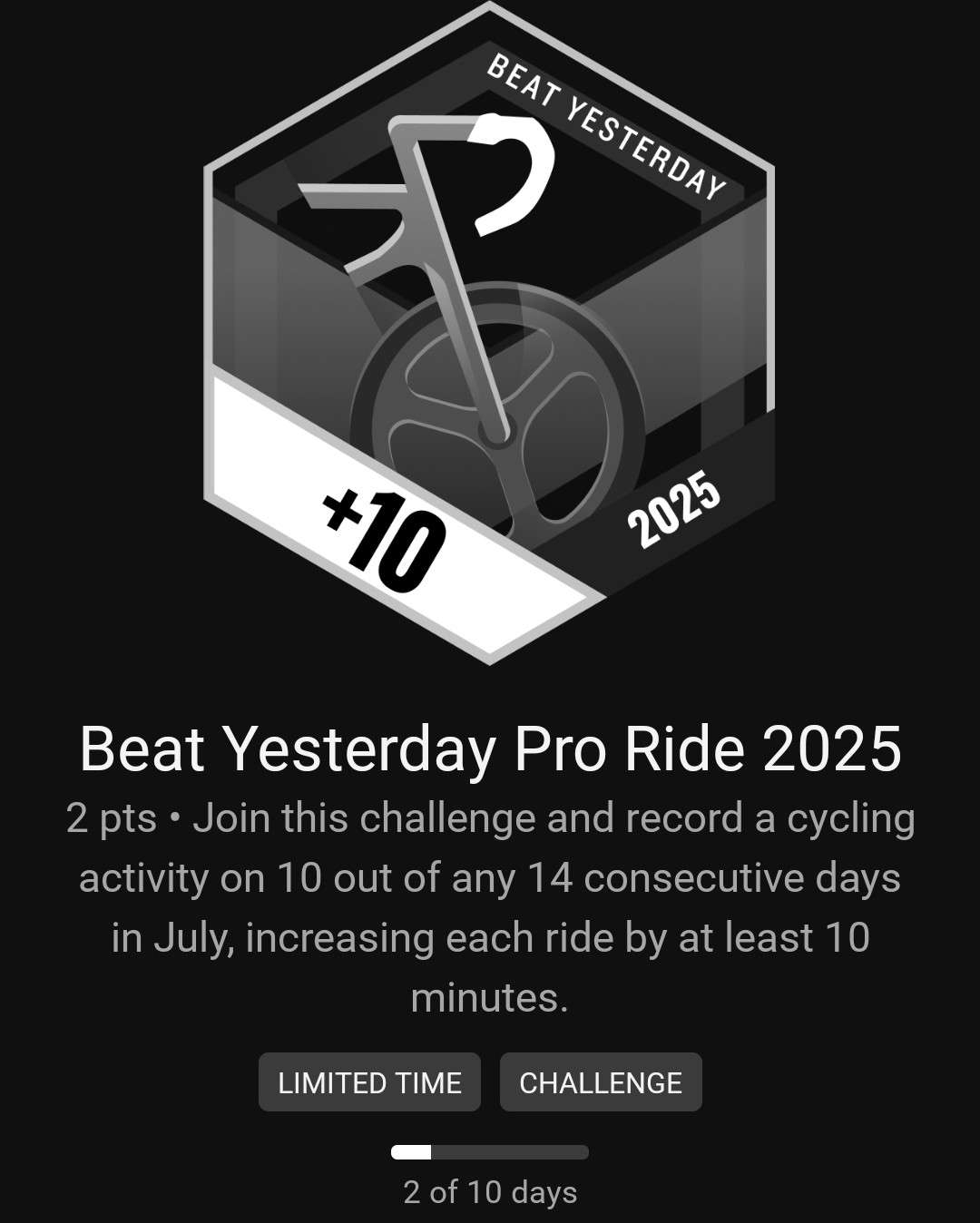 Garmin 这种徽章是脑子进水了吗?每天骑车时间递增 10 分钟,10 天后至少 1.5h,如果我平时每天都要骑半小时呢?最后就要涨到 2h?
