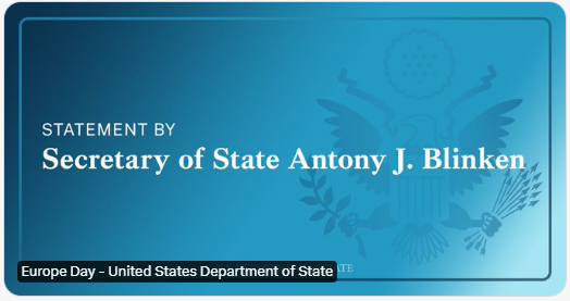 .@SecBlinken: On behalf of the American people, I am happy to join the citizens of the European Union as you celebrate Europe Day. As we celebrate Europe Day, we also celebrate the partnership between the United States and Europe. We are proud to stand together as we help Ukraine defend itself, support the Ukrainian people, and hold Russia accountable for its aggression. https://t.co/1Xtc6t4bwp