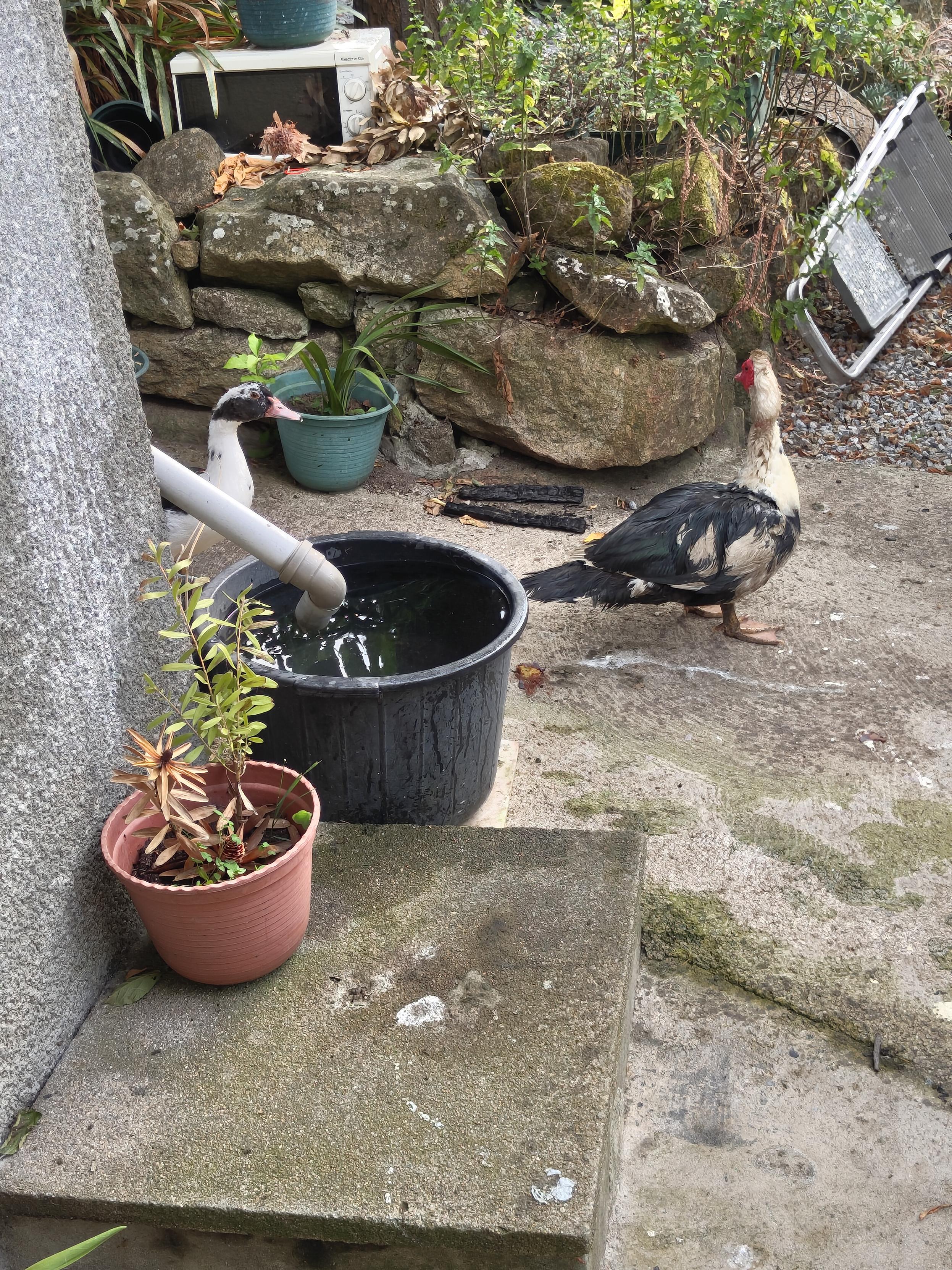 Lá fora os patos estiveram a tomar banho no balde. 😁