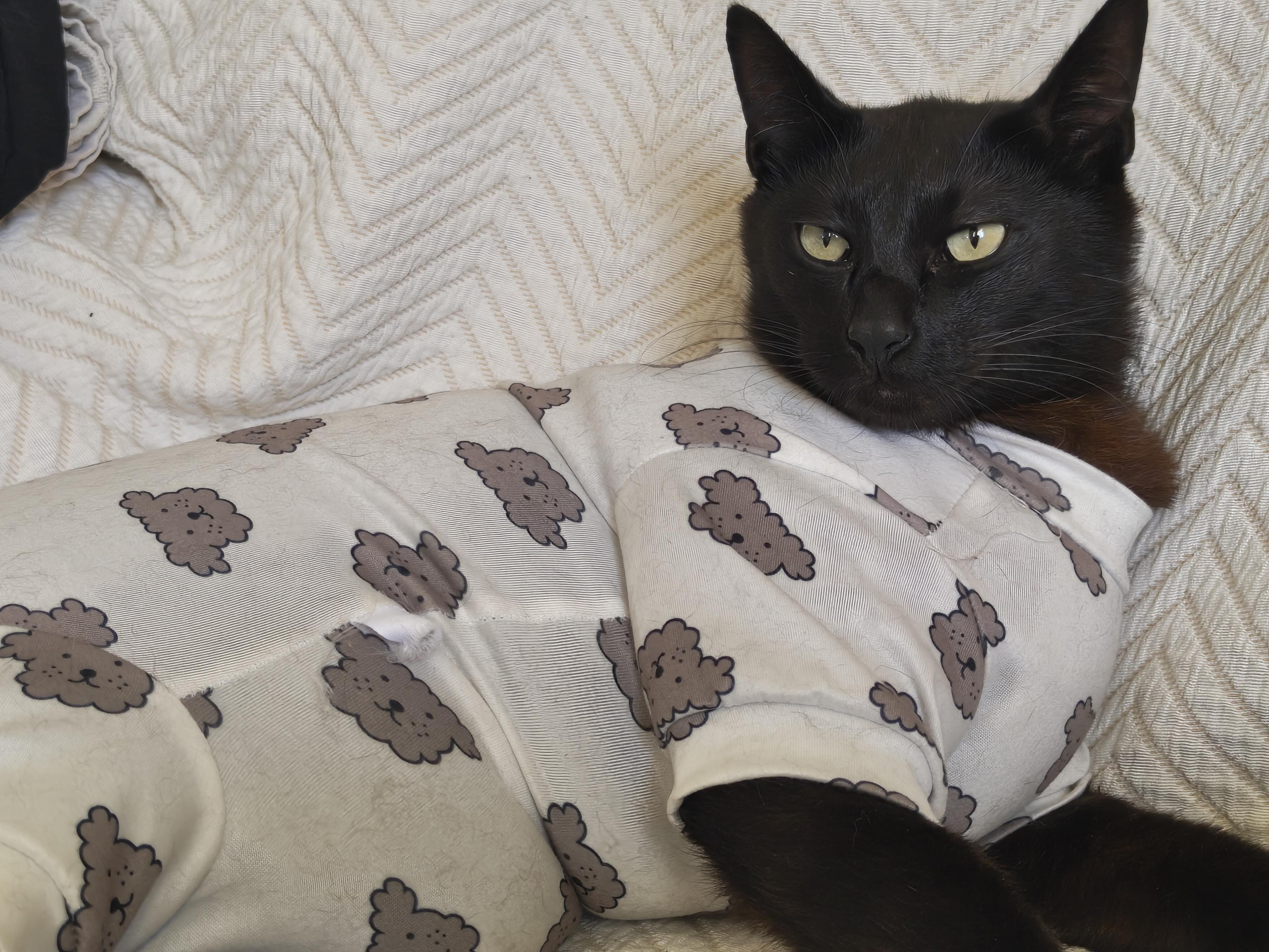 Não gosta de andar com o cone no pescoço. Compramos um fato. Também não gosta. 😅 #Caturday