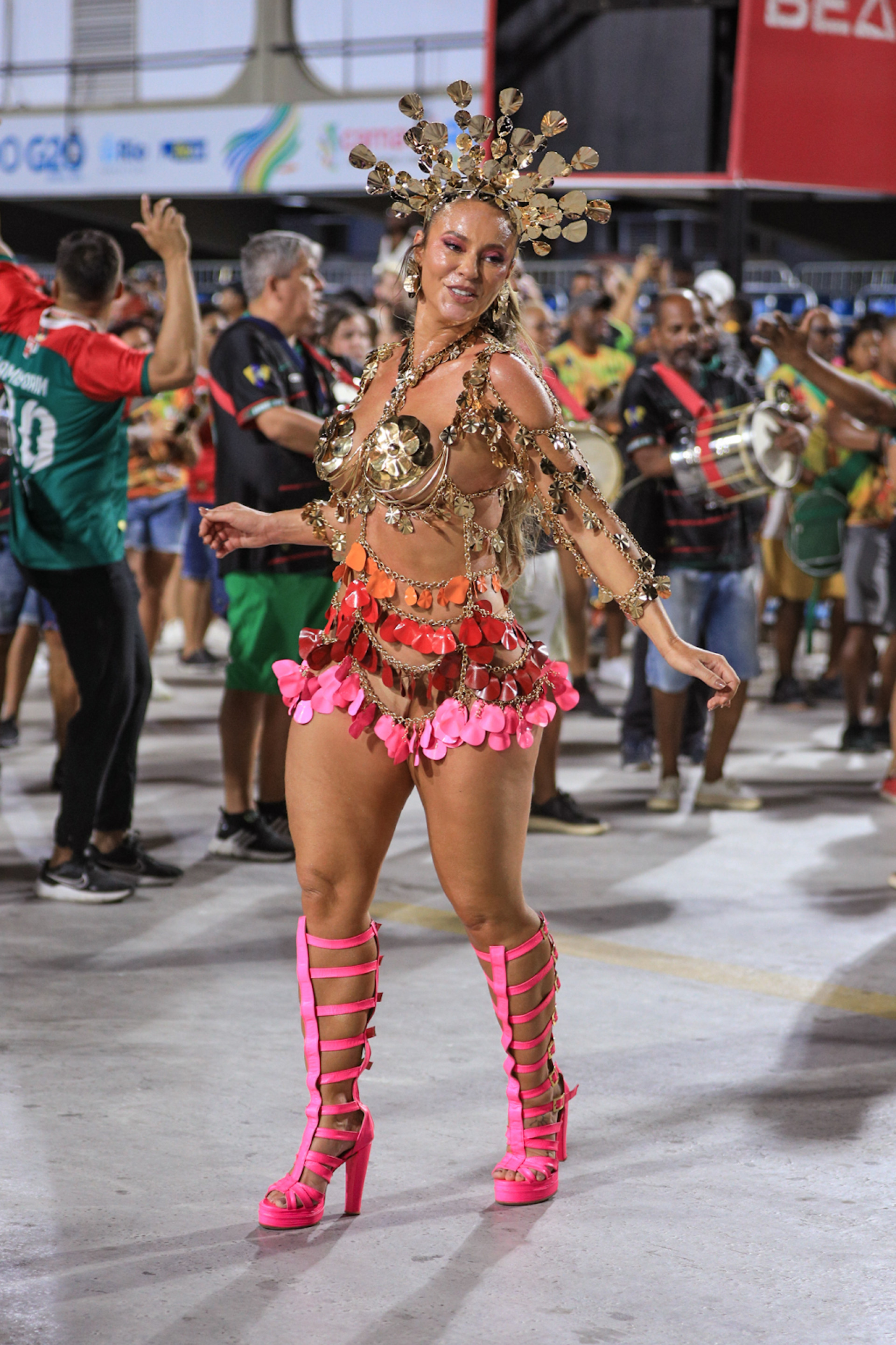 Paolla Oliveira capricha no look e exibe o corpão em ensaio da Grande Rio na Sapucaí