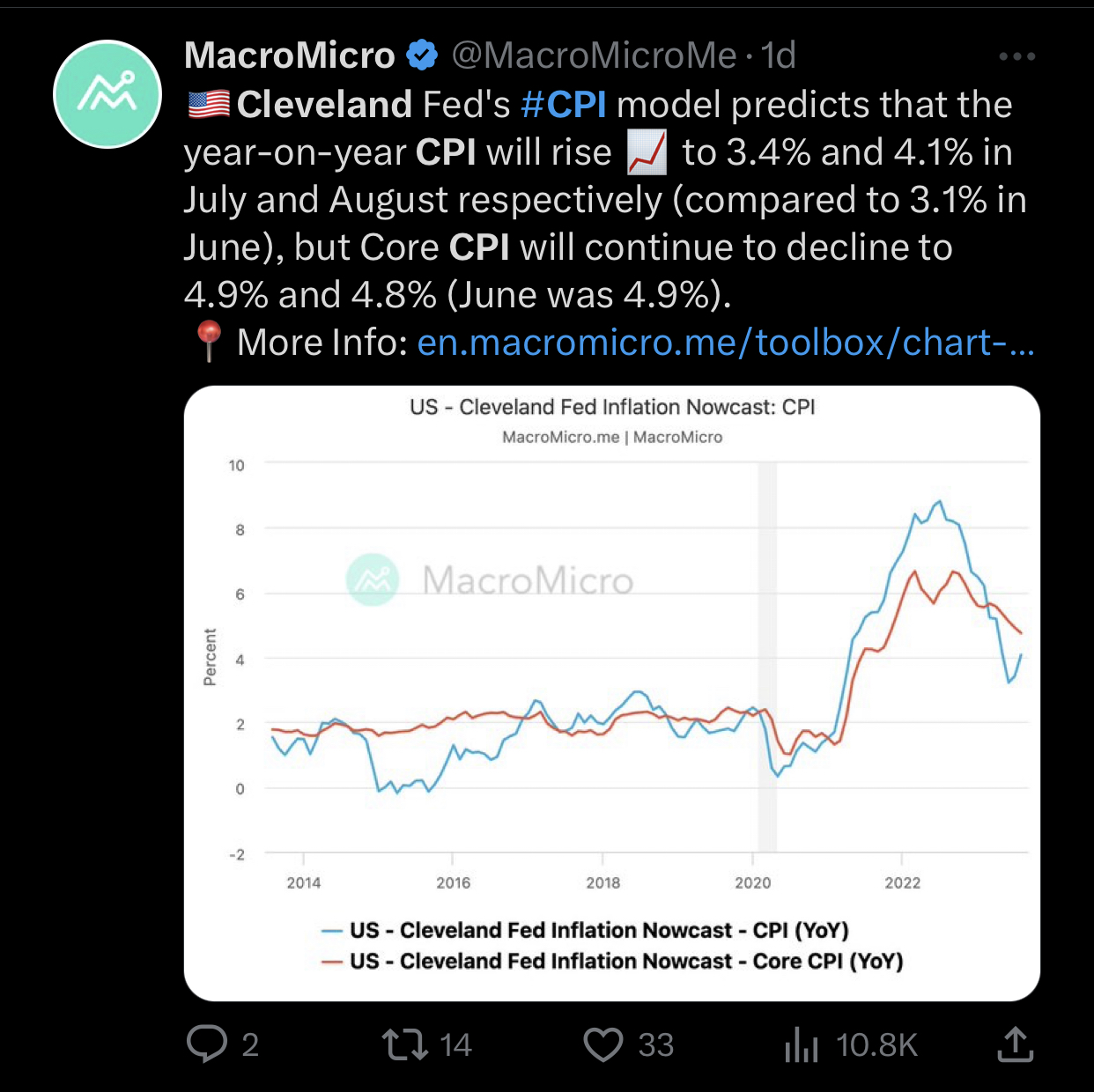 Inflation is accelerating back up again. Food and fuel costs. Fed expectations released yesterday.